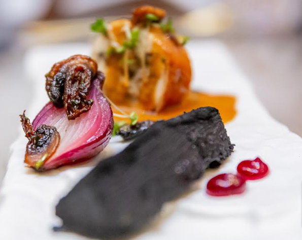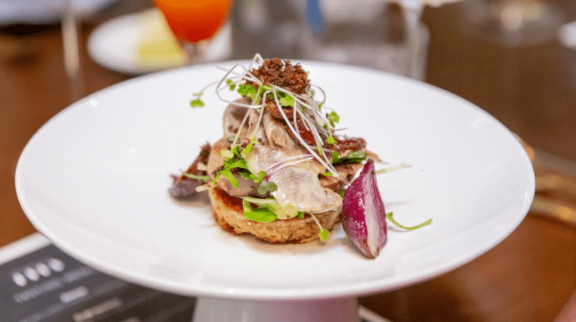 The Chicken course featured a confit thigh stuffed breast, coconut-flavoured cassava ‘briquette,’ tarragon gravy, confit onion, and wild mushrooms. This dish seamlessly blended the flavours, resulting in a truly memorable culinary experience.