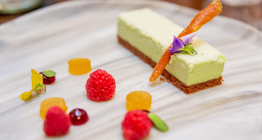As we reached the grand finale, dessert was served. The Matcha Tea Cheesecake was a delightful conclusion to our culinary journey. It featured candied berries and passionfruit liquid gel, providing a sweet and tangy note that perfectly complemented the savoury courses that preceded it.