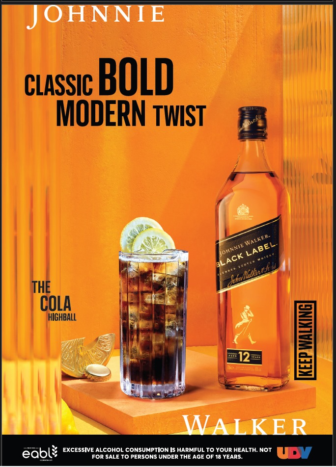 Fill a tall glass with ice cubes, pour in 50ml of Johnnie Walker, then top with 125ml of Coca-Cola. Stir gently and garnish with a lime wedge or slice to brighten the flavours. This serve is ideal for those laid-back nights when you want something simple yet satisfying.