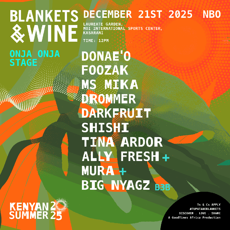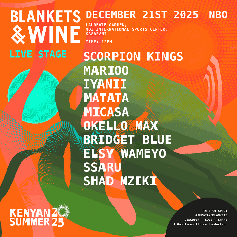 Blankets and Wine has announced its line-up for the December 2st edition at Laureate Gardens in Kasarani, featuring Tanzania’s Marioo, South Africa’s Scorpion Kings and UK house star Donae’o among the headliners.